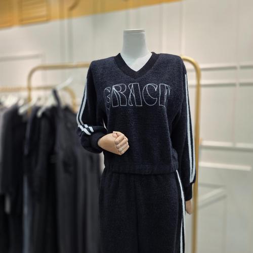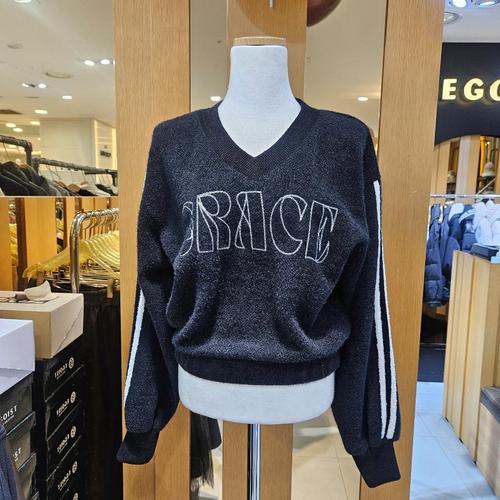 [백화점 정품] 에고이스트 라운드 브이넥 니트 스웨터 [BL] V넥 하트 비죠 레터링 니트탑