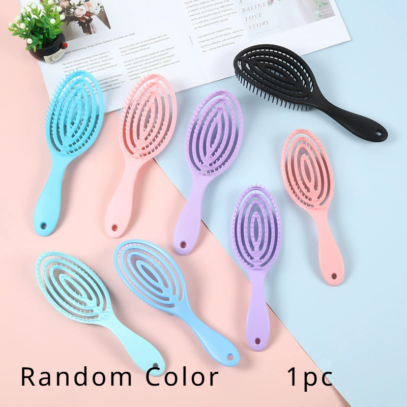 TEMU 두피 마사지용 속이 빈 헤어 빗 - 정전기 방지, 엉킴 방지 스타일링 브러쉬, ABS 플라스틱 및 샌달우드 손잡이 특징, 일반 모발 타입에 적합.