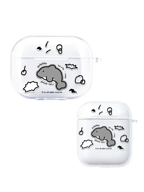[이레케이스앤굿즈] 낙서돌고래 에어팟1 2 3 프로 프로2 프로3버즈2 3 투명하드케이스
