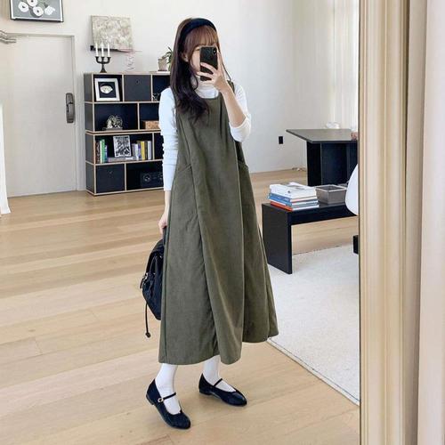 [다잇템][다잇템] 여자 롱 에이라인 면혼방 코듀로이 슬리브리스 캐쥬얼 원피스_23771284_588872