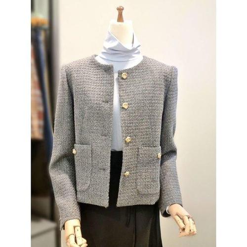 CLOREX 여성 트위드 자켓 버튼 캐주얼 트위드 자켓
