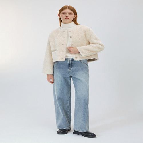 [르뚜앙]로로 겨울 숏코트 아이보리 에코퍼 페이크퍼 노카라 퍼자켓 라운드넥 데일리룩 키작녀 하객룩 오..
