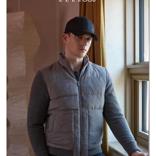 [엘르골프]남성 스웨이드믹스 소매니트 덕다운니트6K72002