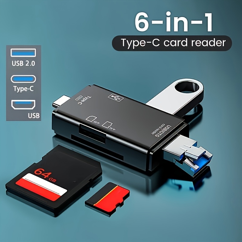 TEMU SD 및 TF 카드용 Type-C/USB 6-in-1 OTG 멀티 기능 메모리 리더, 소형 디자인, 사용하기 쉽고, 작업에 필수적, ABS 소재, 남성-여성 연결, 배터리 없음, 카메라 카드 리더 | 세련된 디자인 | 내구성 있는 구조