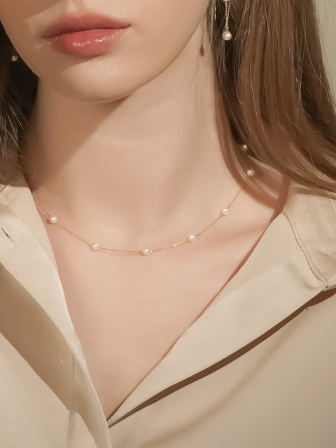 [쥬넬] 14K 엘리아 진주 포인트 체인 목걸이(2 size)