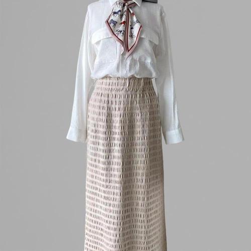 [미라클세븐]여성용 일상 엠보 패턴 비스코스 테슬 밴딩 롱 스커트
