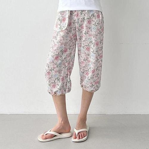 [에이치플러스몰]여자 꽃무늬 엠보 밴딩 바지 꽃무늬 편한 주름 팬츠