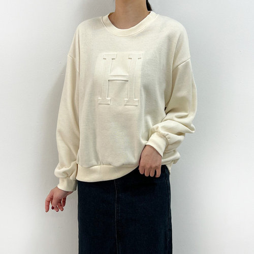 미즈큐즈 / 엠보 H 겨울 여성 데일리 숏 기모 맨투맨 티셔츠