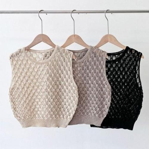 [엄지척]여름 U넥 민소매 펀칭 단가라 니트 조끼 레이어드_19612975_667501