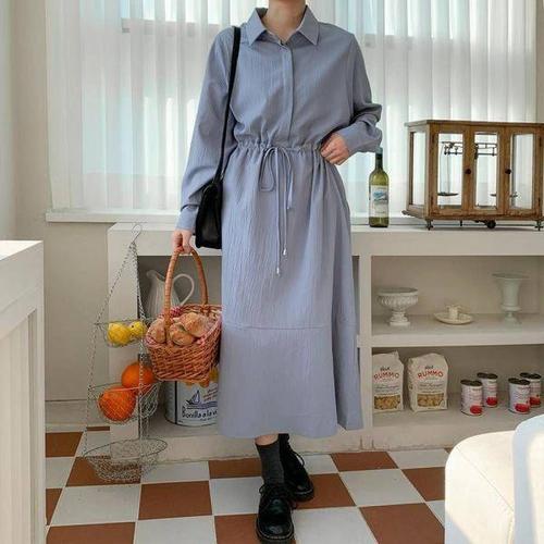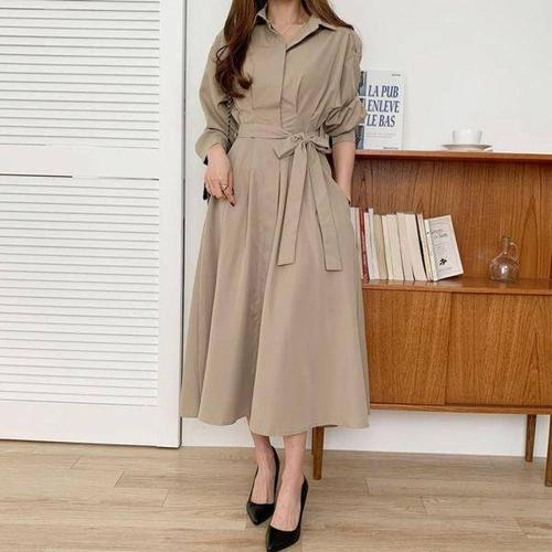올데이마켓 40대 여성 롱 루즈핏 차분한 드레시 카라 원피스