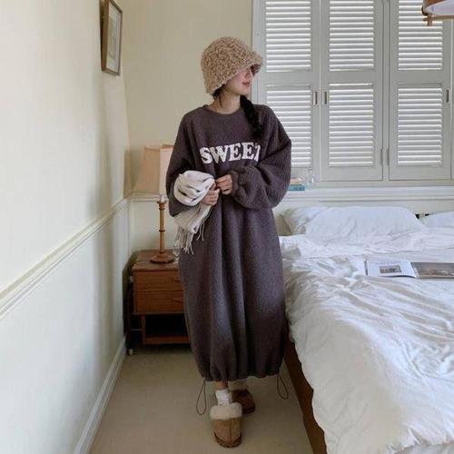 [에이치플러스몰]원피스 롱니트 하객 여성 밑단 쉬폰 여름 셔츠