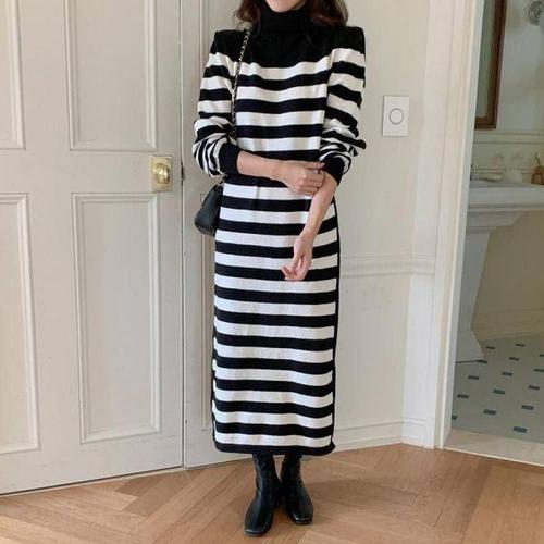 [에이치플러스몰]쉬폰 원피스 셔츠 여름 니트 벨트 폴라넥 롱니