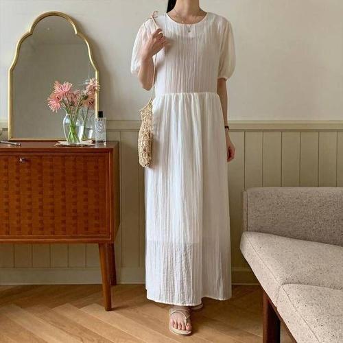 대박난박양 에이프릴 쉬폰 반팔 롱원피스