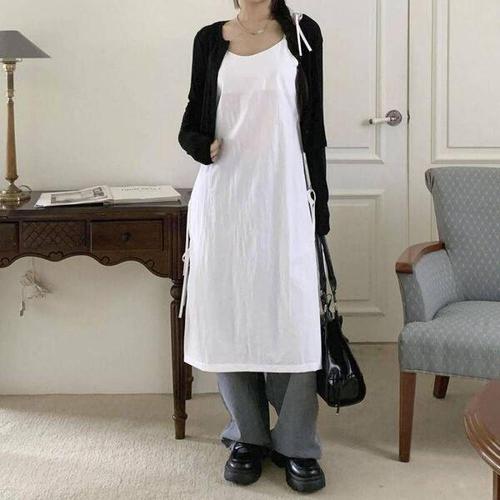 [에이치플러스몰]셔츠 쉬폰 롱니트 하객 원피스 여름 민소매 데