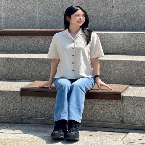 헤지스 여성 [시즌오프][CITY ESSENTIAL] 여름 반팔 셔츠 크림 (HSSH5BP33CR)