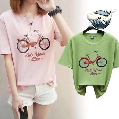 [셀러허브_여성트랜드패션]ONM 여성 자전거 프린팅 티셔츠 라운드넥 여름 반팔