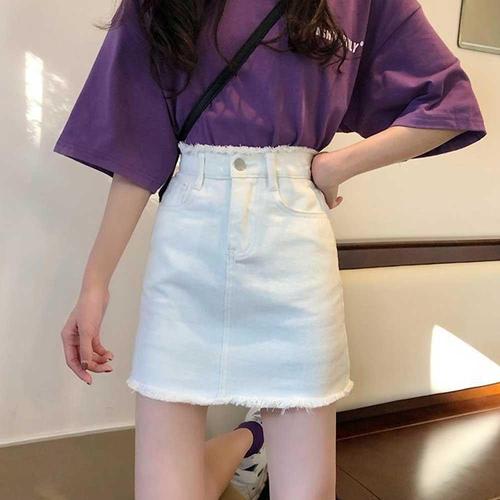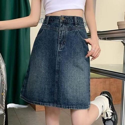 여성 데님 스커트 봄 여름 기질 빈티지 스판 A라인 치마 캐주얼 슬림핏 하이웨이스트 청치마 ZZL