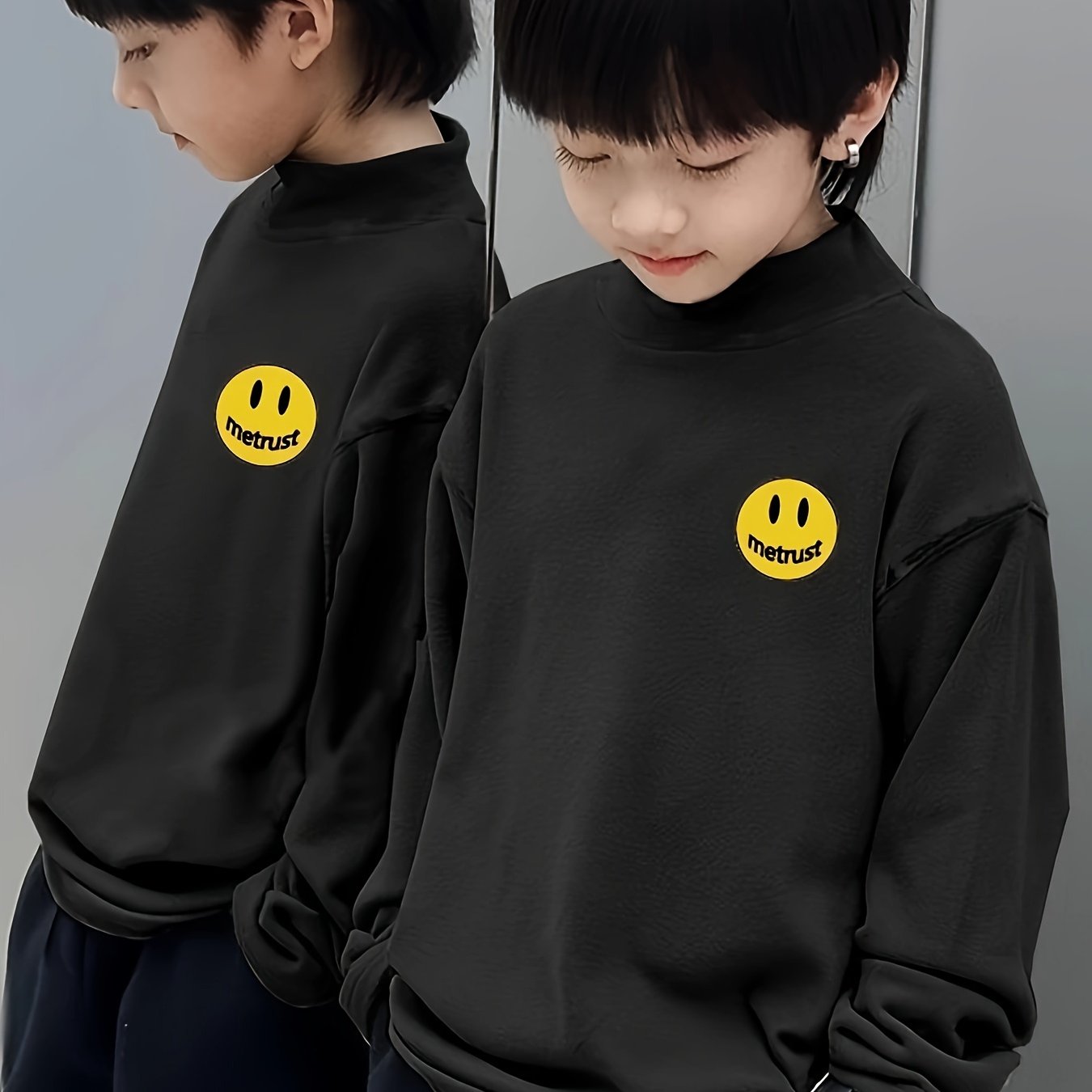 TEMU 소년용 플리스 안감 터틀넥 스웨트셔츠 - 따뜻하고 신축성 있는 겨울용 긴팔 상의