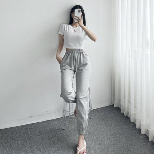 글램핏 / 힙한 코디 세트 하트 크롭 반팔 티+여름 조거팬츠 4컬