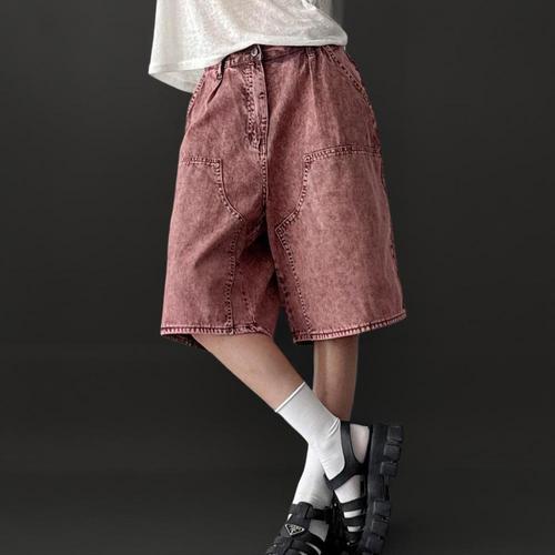 |CSP8C3E|여성 남성 빈티지 피그먼트 절단 반바지 여름 청바지