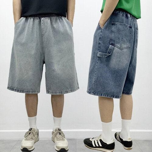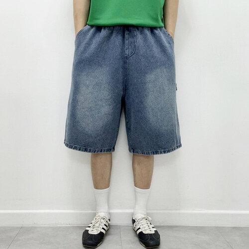 [맨커버]남자 여름 버뮤다 데님 밴딩 와이드 청반바지