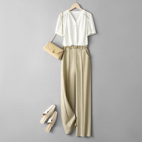 제로투올샵2 / 여성 여름 브이넥 셔츠 세트 루즈핏 투피스 화이트+카키 XL