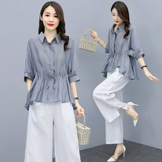 여성 봄여름 세트 면 린넨 반팔 셔츠 캐주얼 투피스 I02Z25 핫픽3