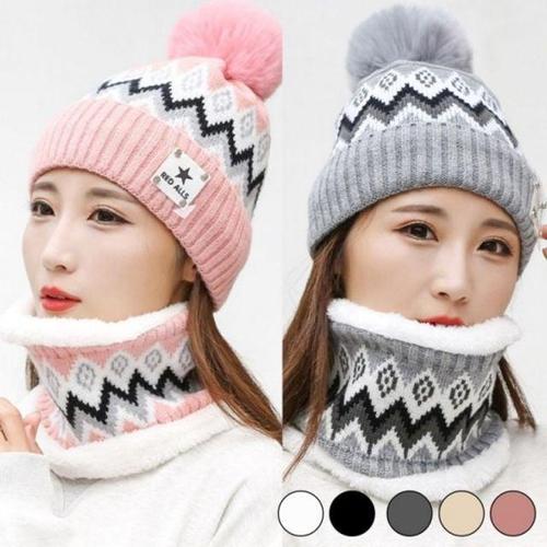 따뜻한 겨울 세트 패션 방울 비니 넥워머 여성 보온 WFIL2R9