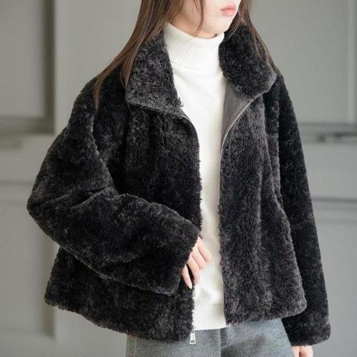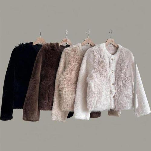 [신상오픈런]여성 겨울 포켓 털 자켓 소프트퍼 버튼 스트링 연말 스타일
