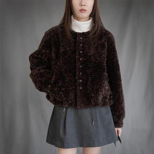 [신상오픈런]여성용 겨울 더블버튼 퍼 자켓 숏 라운드 털 자켓