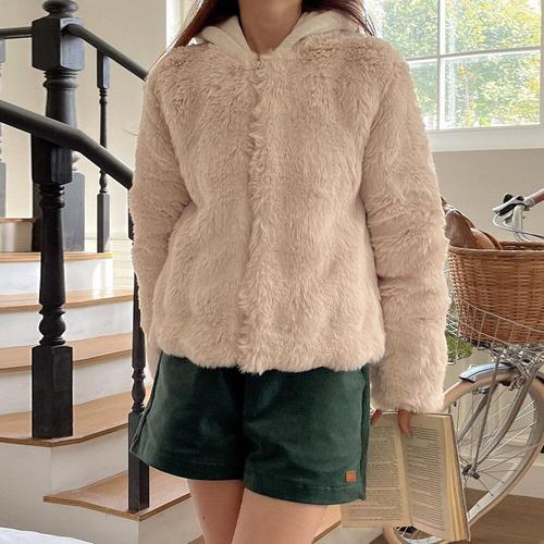[에이치플러스몰]여성 인조 퍼 후드 점퍼 숏기장 겨울 아우터 3컬러