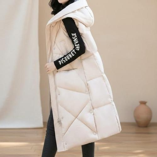 퀼팅 롱패딩 조끼 여성용 빅사이즈 브이넥 포켓 디자인 가을겨울 보온 경량 민소매