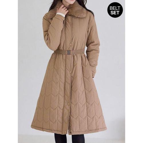 소고 세이브존01 밍크 트리밍 다이아 퀼팅 벨티드 롱 패딩 TJ4FA17-2