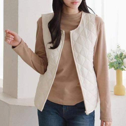 여성 데일리 심플 엘레강스 라운드 퀼팅 조끼 WS-JP23