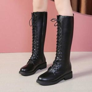 레이스업 여자 롱부츠 기모 장화 겨울 데일리 패션