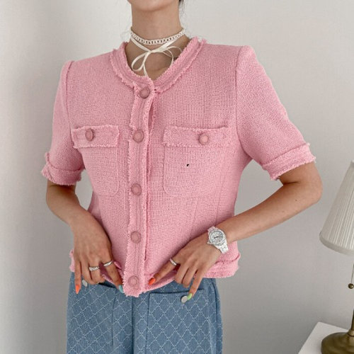 플러리싱 / 파스텔 린넨 트위드 테슬 반팔 자켓 플러리싱