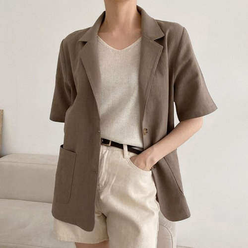 밸리걸 세이브존01 린넨 혼방 베이직 반팔 자켓 819120