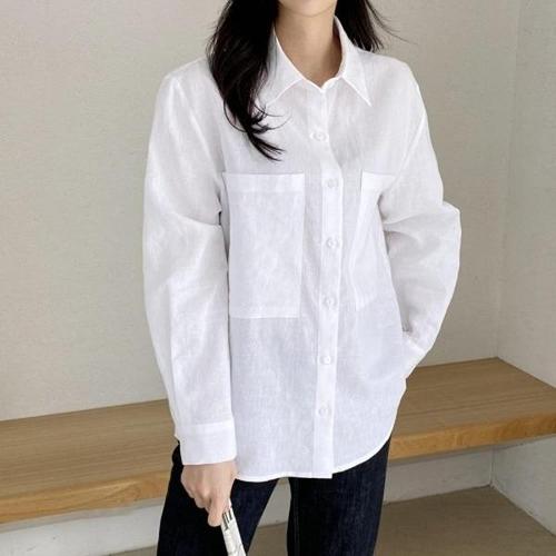 [옷자락]여자 데일리 멀티컬러 면 린넨 포켓 셔츠 남방