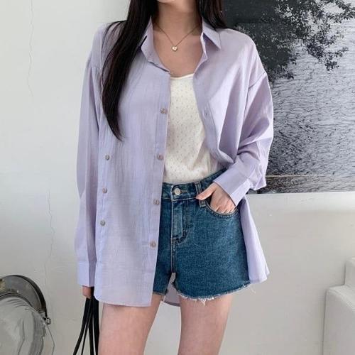 [신상오픈런]|KDH31E1|에론루 심플 셔츠 린넨라이크 오버핏 썸머 스프링 카라 여성_18156218_597559