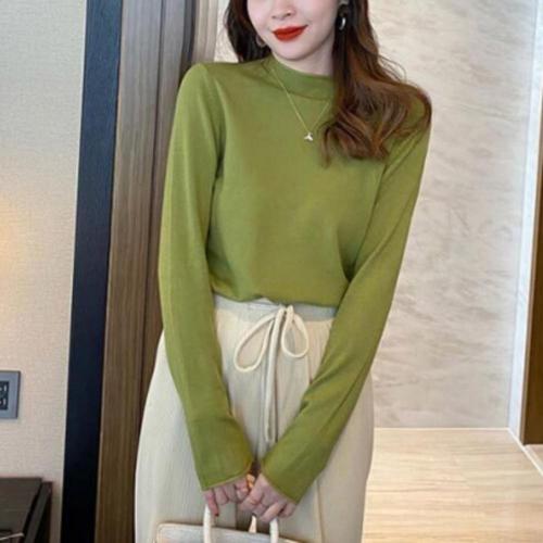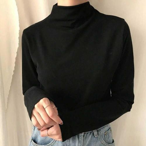 BLEO 여성 봄 가을 목폴라 기본 데일리 긴팔 니트 티셔츠