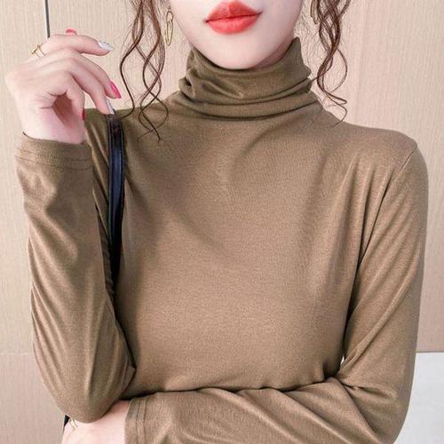 캐럿 여성용 소프트 터치 립 터틀넥 티셔츠