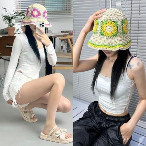 [JED] 버킷햇 밀짚모자 여름 벙거지 라탄 여자 니트짜임