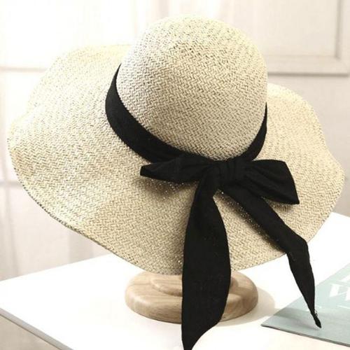 여성 라탄모자 여름휴가 바닷가 리본 밀짚 햇빛가리개 WFIL43M