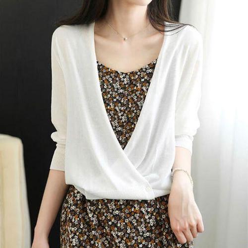 한국 스타일 슬림핏 싱글 버튼 니트웨어 브이넥 스웨터 여성 패션 봄 오픈 가디건 긴팔 캐주얼웨어
