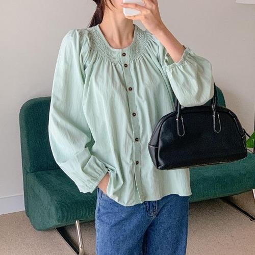[GGPX]스퀘어 스모킹 셔링 블라우스 (GPCBA037D)