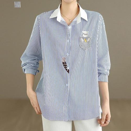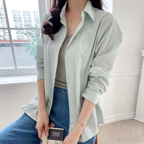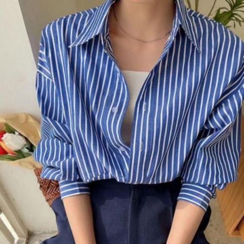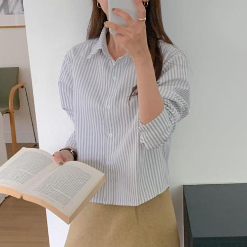 [신상오픈런]여성 스트라이프 카라 긴팔 셔츠 가을용 세미크롭