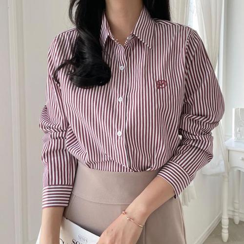 [루시다][루시다]다이린 스트라이프 자수 셔츠
