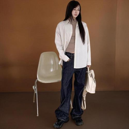 [에이치플러스몰]신상셔츠 드레스 스트라이프 가을 남녀공용 셔츠