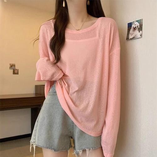 여성 베이직 슬림핏 라운드넥 얇은 긴팔 니트 티셔츠
