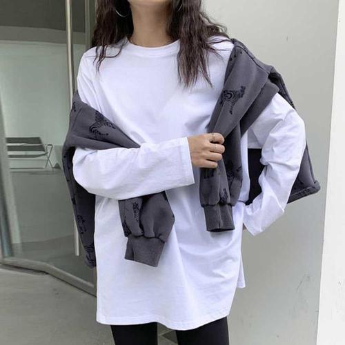 [오너클랜]인기상품 여자 라운드 긴팔 화이트 블랙 얇은 티셔츠 베이직 [W9B4A17_260409]